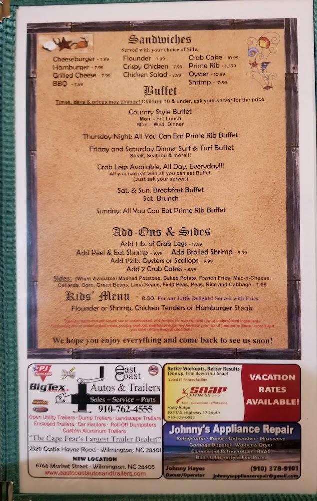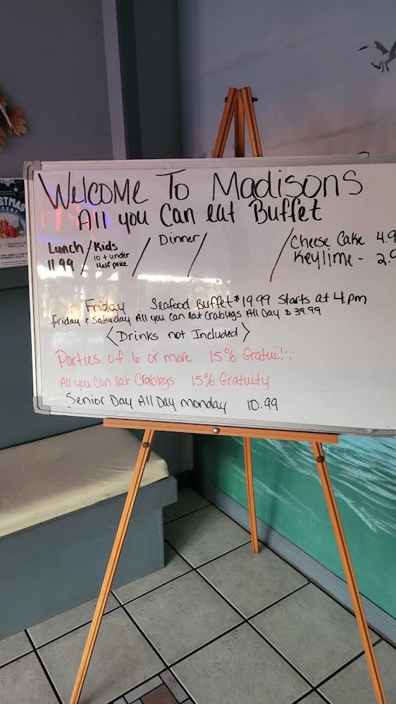 Welcome to Madison's Prime Rib Steak & Seafood, your premier locally owned buffet in Sneads Ferry, NC. Located at 105 Sugar Ln, we pride ourselves on delivering delectable dishes in a relaxed atmosphere. Enjoy a broad selection of specialties, from luscious prime rib to fresh seafood, accompanied by our excellent café and a variety of desserts. Whether you're dining solo or with a group, our welcoming space features accessible seating and facilities. With options for takeout and delivery, you can savor our delicious meals at your convenience. Join us for lunch or dinner and experience the best of local cuisine!